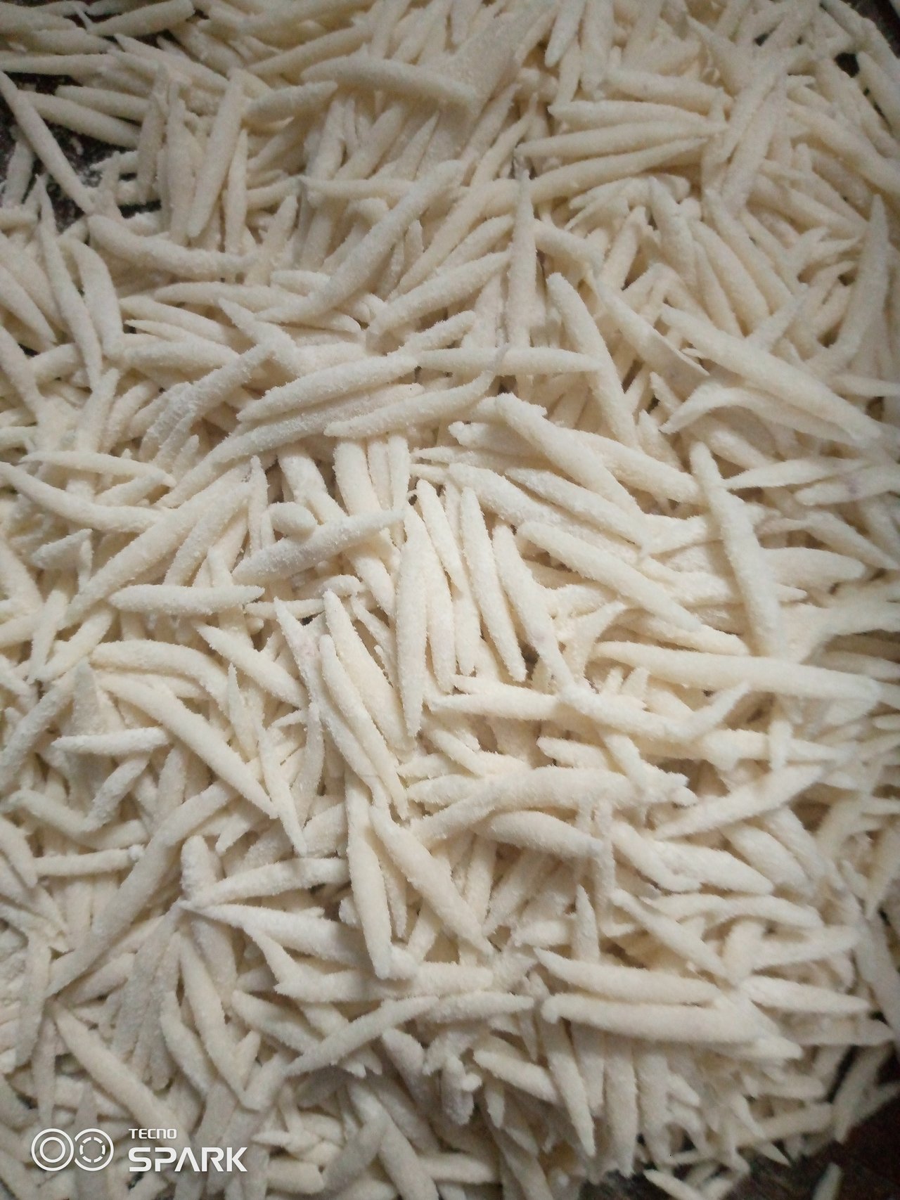 Now take small pieces of the boiled rice powder and make them into long, thread-like shapes.