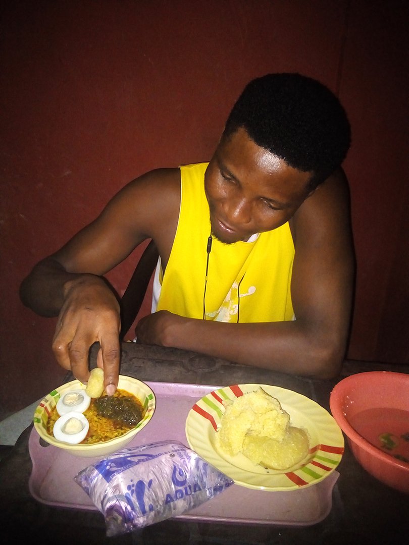 When I got home it was around 11:45 am. That was when I took my first meal of the day. a melon soup and eba. After which I slept till noon.