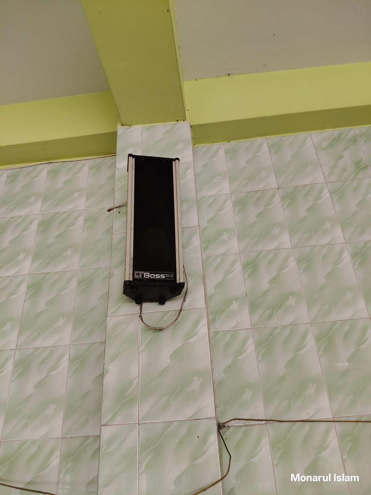 Then I will show you that there are many fans in this mosque, each fan has a separate switch. I am giving a picture of the fan here and also a picture of the switch board. Then I saw that two sound boxes are installed, these sound boxes are used during every prayer. Because the Bazaar Station Mosque is always crowded with people, so the sound box always has to be used. Using a sound box benefits everyone. Because those who are at the back often cannot hear the sound, so the sound box is used to make it easier for them to hear the sound.