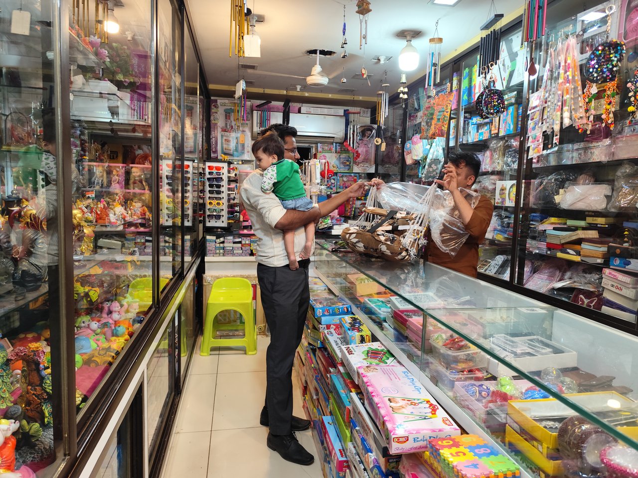 First we went to a shop, but there we did not find favorite toys. Then went to the second and third shop too, but either the toys were not as good or their prices were very high. When it comes to the happiness of the child, the heart is to get the best toy to him, but sometimes the high prices of shopkeepers make the mind upset. Well, we did not lose courage and continued the search.