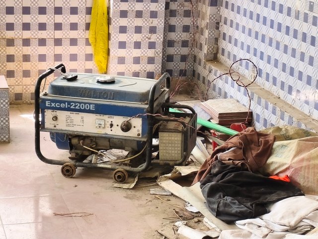 When the electrical connection of the mosque was disconnected, there was a generator system, and here I saw a generator in a corner next to the ablution place. Then I performed ablution from here and entered the mosque through the second gate. Upon entering, the floor of the balcony of the mosque was completely tiled.