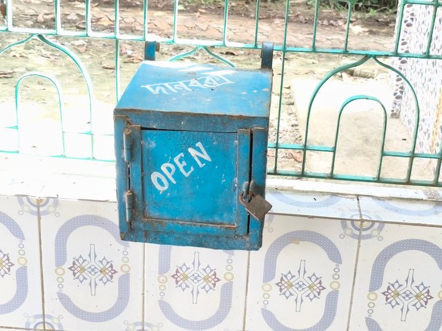 Standing on the balcony, I took a selfie of myself from the mosque. And next to the cupboard, there was a donation box with the grill of the balcony of the mosque. The balcony of the mosque had three doors on three sides to enter the mosque.