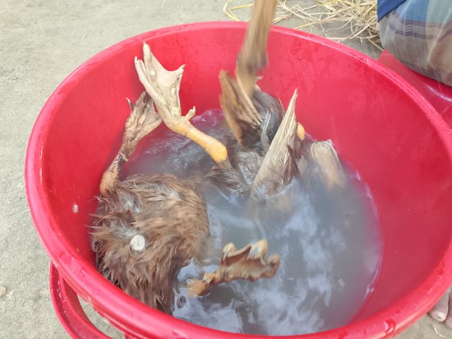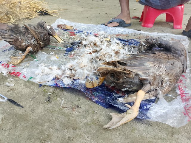 Tonight, a few small foods were arranged with ducks. Because of this, these ducks have been cleared since noon. Because it takes a long time to clean the duck. The ducks were being cleaned together. At first, the hairs that are smiling. They are being submerged in hot water. Towards the end, they are washed in water and turned yellow. This makes the duck clean very quickly. Within a short time we cleaned the duck. Yet it was evening to complete everything. After dusk we put them in for cooking. And when cooked in the night, they are not eating.