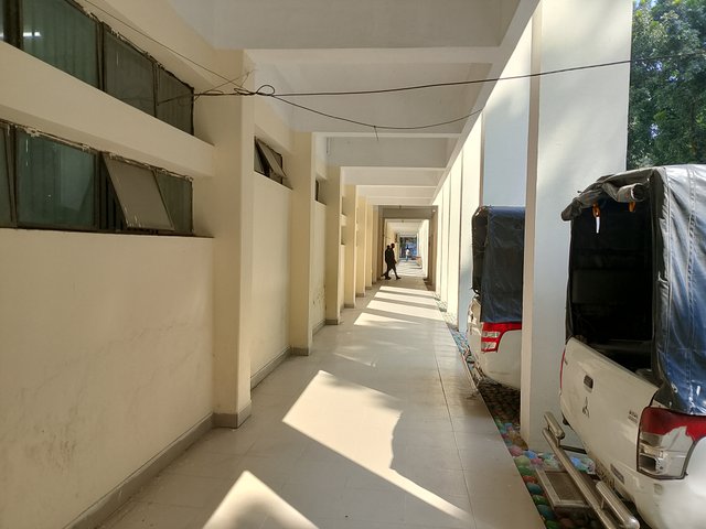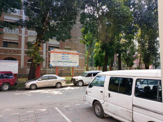 From there with Lalan Bhai. I went to the office of the District Commissioner. And we went there to give fingerprints to the place where BRTA is. So the man was not there so we were standing outside the buildings talking about various things with Taukeer and Lalan bhai. The buildings there were quite big as Panchagarh district or official activities are held here. And there were a lot of big carts and horses that I could see here.
