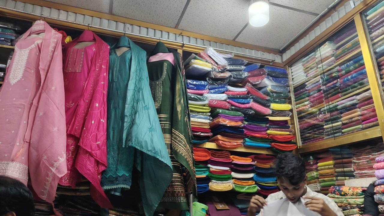 We came from outside and saw the store and first took pictures. Then we went inside. When we went there, we were looking for clothes as per our needs. However, I bought white gauze cloth for my younger sister. Since the cloth will be used for a college dress, I bought gauze cloth. After that, I was taking pictures of the surroundings. There was quite a lot of collection there. The store was basically all about overalls. There were clothes for children, women and men.