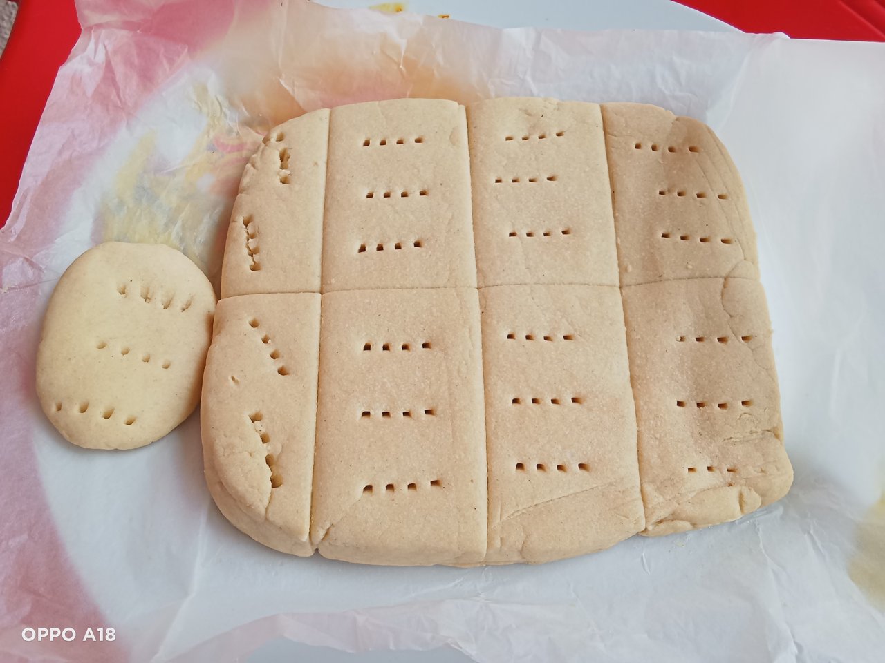 I preheated oven to 150⁰C. I place my short bread on it. I Bake 20 minutes, Checking the back it was lightly golden brown.