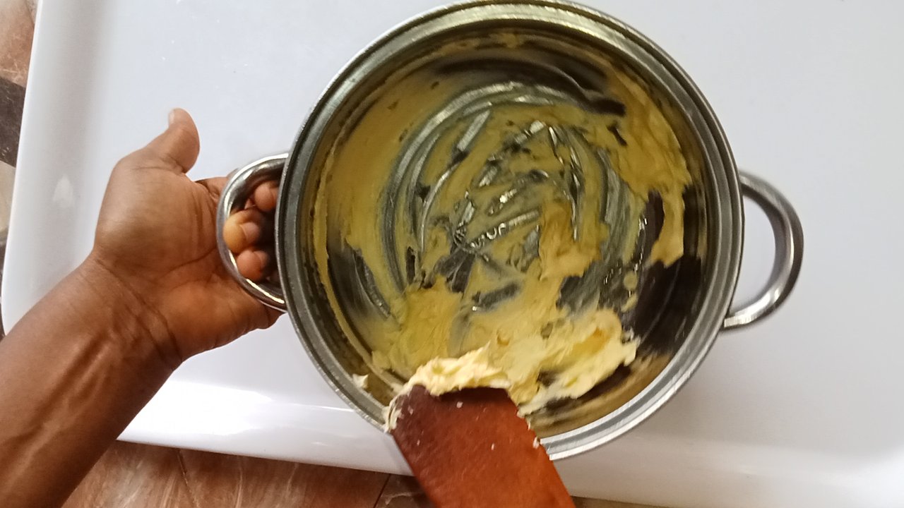 In a clean dry bowl, poured the desirable quantity of butter and beat for few minutes.
