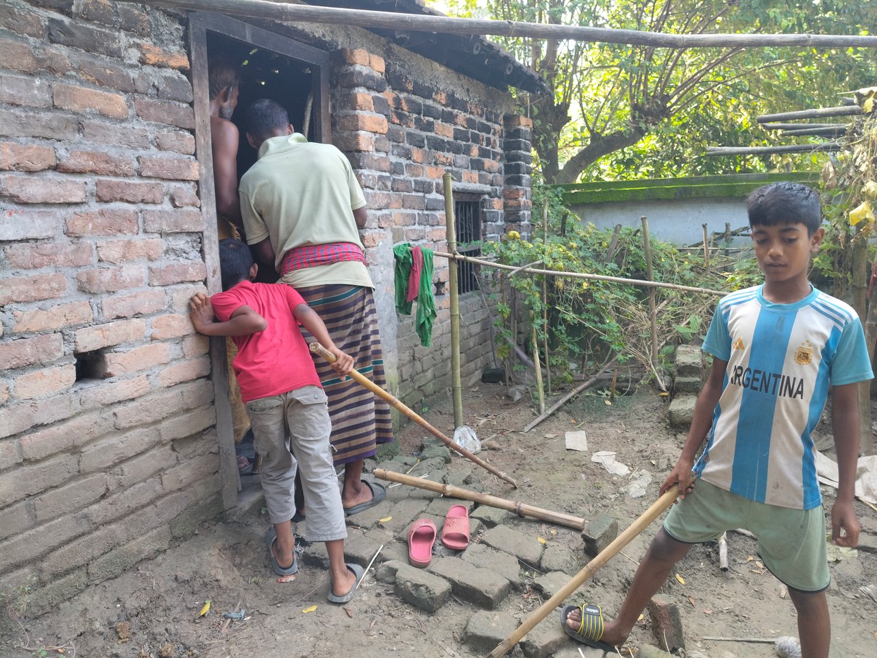 This is that there is a stick in the hands of small big ones for snakes. Originally the snake came to the kitchen. My thinking was afraid to see the snake. And he called all the snakes to kill the snake. Finally, the village men came to all the people of the village came to their house. And in all efforts of everyone, the snake finally died.