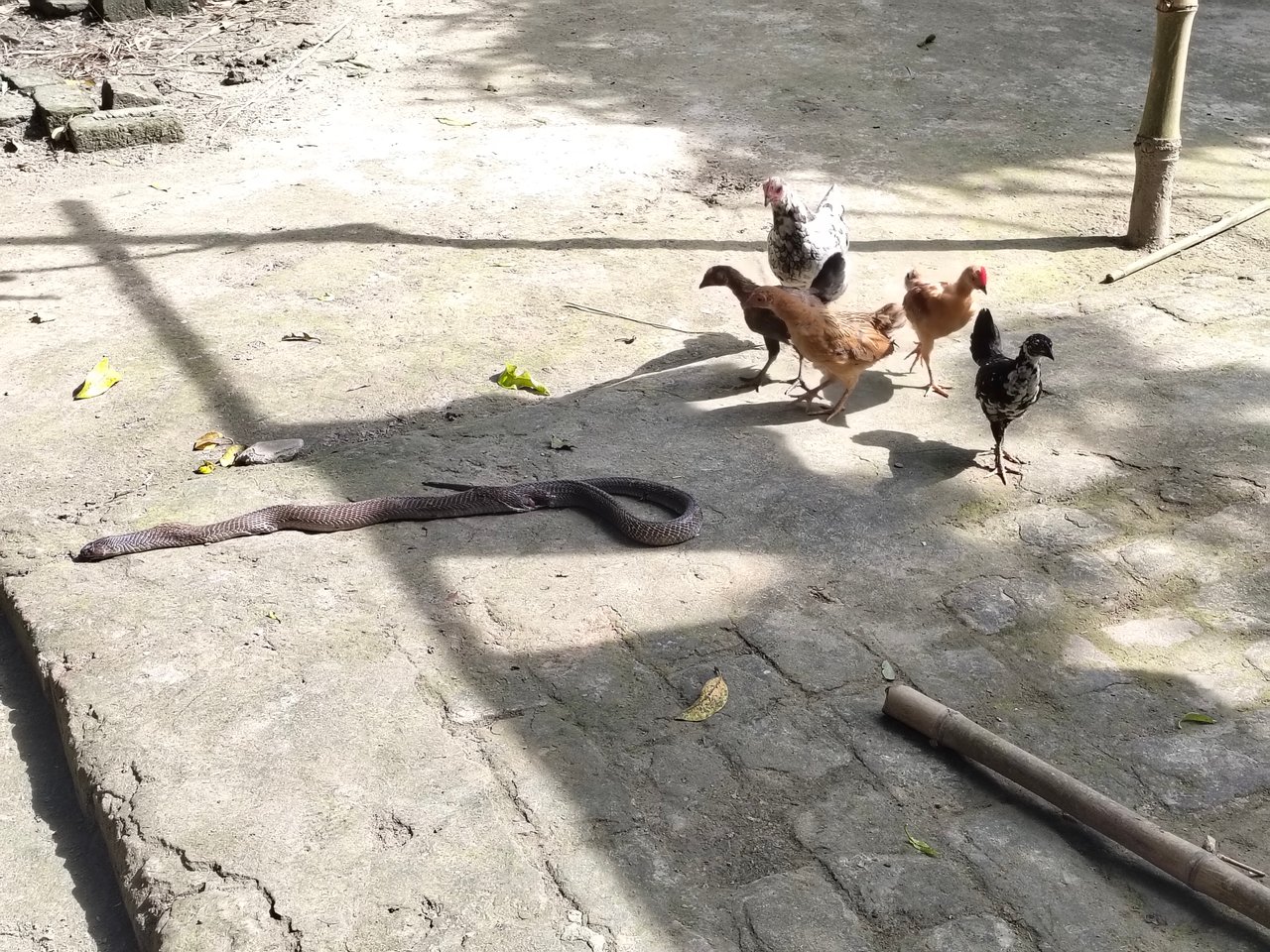 When the serpent was killed, a cat in our house was watching the snake how nicely. There are many wars inside the snakes and cats. The cat is very fast an animal. He can move his legs very fast. The cat wins when he fights with a snake. See also chickens and chicken children are watching the snake. Since the snake is killed, other animals can come to him. If the serpent was alive, then no one would come beside him. After a long time, we saw a poisonous big snake in my hand. Everyone was terrified to see the fact that. The village fell inside the village. We all became very happy to kill the snake.