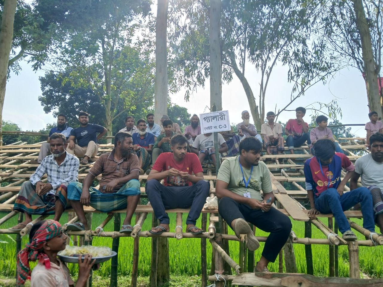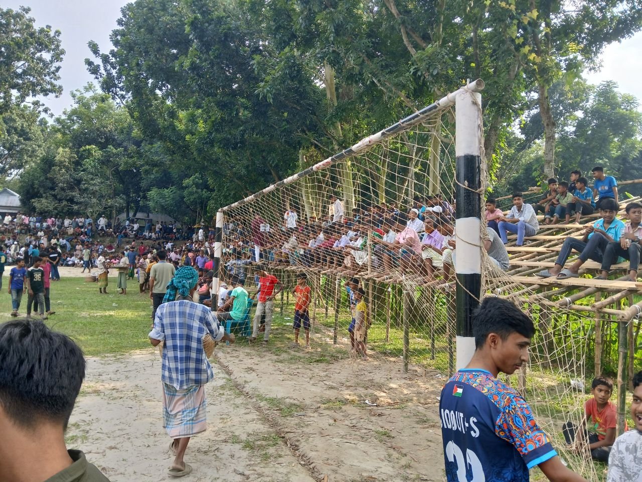 I understood this scene of joy and excitement, when I was present at the field last Tuesday, September 9. Because there was an important game of the tournament that day. When I reached the field at 2:40 pm, I saw that more than half of the field was filled with spectators. The game will start at 4 pm. I was even more surprised that in this village field, although there is no gallery made for spectators like in the city stadium, the tournament authorities have temporarily built a gallery with the help of bamboo and wood for the spectators to sit. They have also built a high tower in one corner of the field to record the video of the game. In addition, a separate gallery for the authorities to sit and a dressing room for the players.