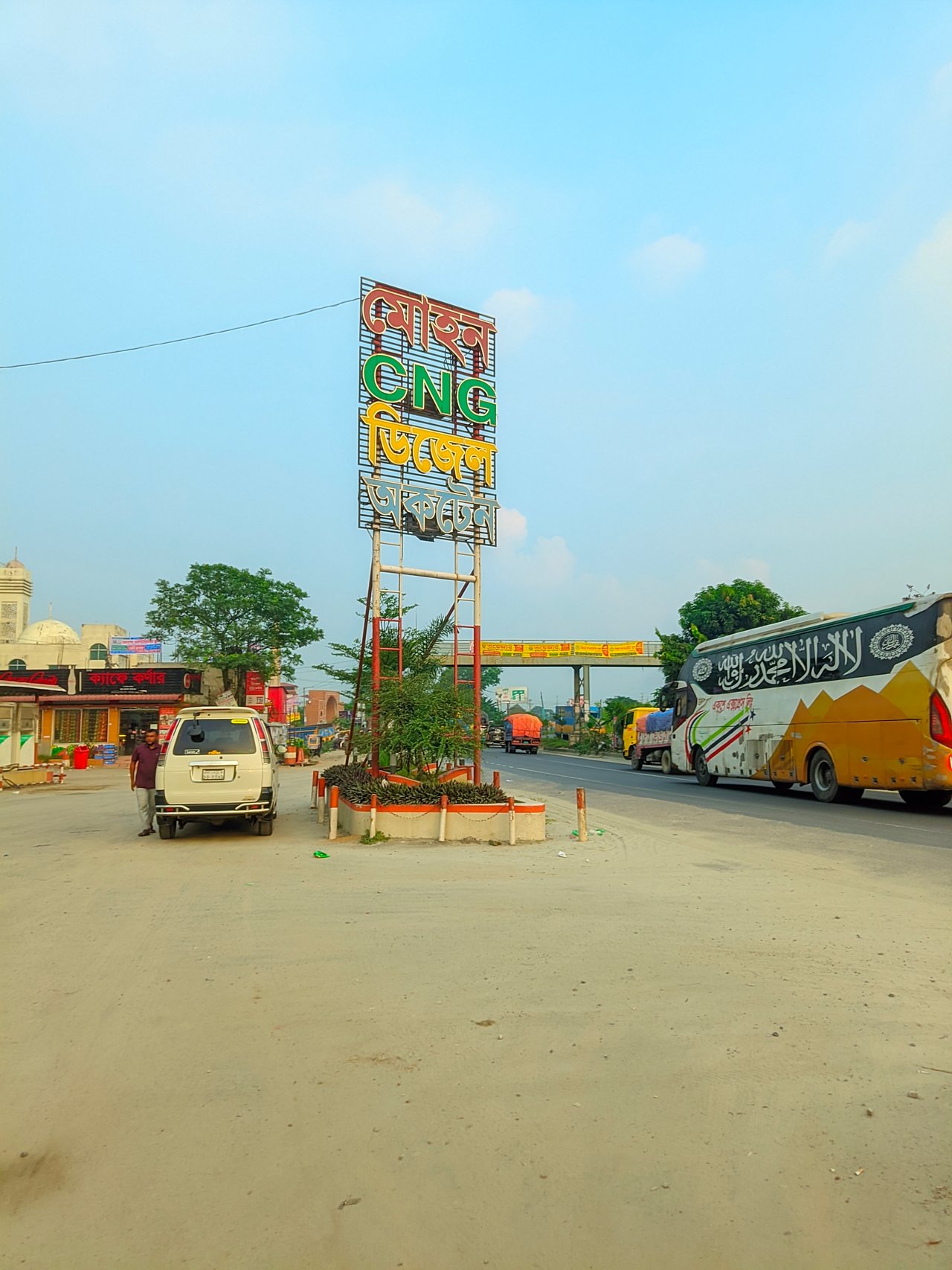 While I was going from Dhaka to my village home in Comilla, my car stopped at the Mohana filling station for CNG refueling. I got out of the car and walked around the filling station to take a few pictures. I went to the coffee shop and had a cup of coffee. The vehicles enter the filling station to refuel, while the passengers use the restroom or dine at the restaurant. The government fuel department approves the filling station.