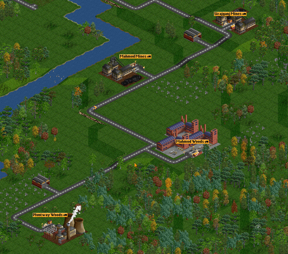 Now I was looking for another city besides my two cities, I found another city right next to my city, I built a road to connect my city with that city, and I also built a bus stand and a truck stand in that city, then I kept looking for some more factories and murderers, I found iron ore and coil mines, then I built a road to connect them.