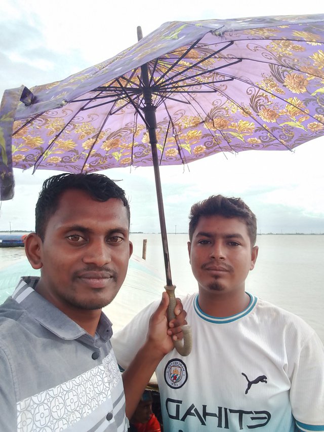 In the afternoon, I had work at the market, which was a bit far from our market. When I went to our market ghat, I could not find any boat to go to that market. I waited for a long time for the boat and started walking. After going some way, the rain started and then a tree stood next to a house. After the rain subsided, I set off again. After going to the market and finishing the work, I came home by boat.