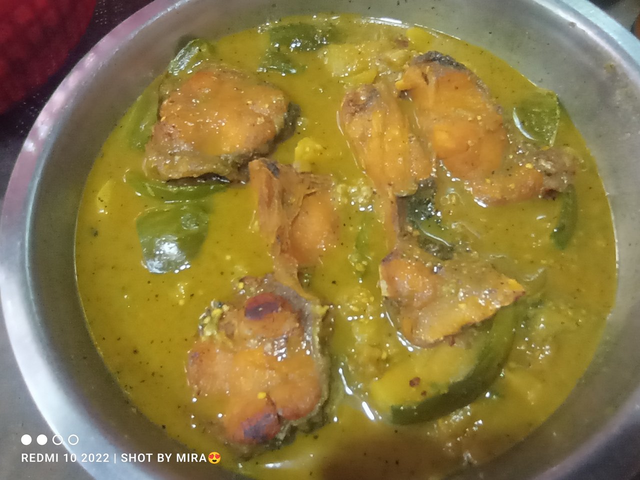 - Finally, today's recipe is ready: eggplant and potato curry with Rui fish.Then I arranged it beautifully on a serving dish to serve.