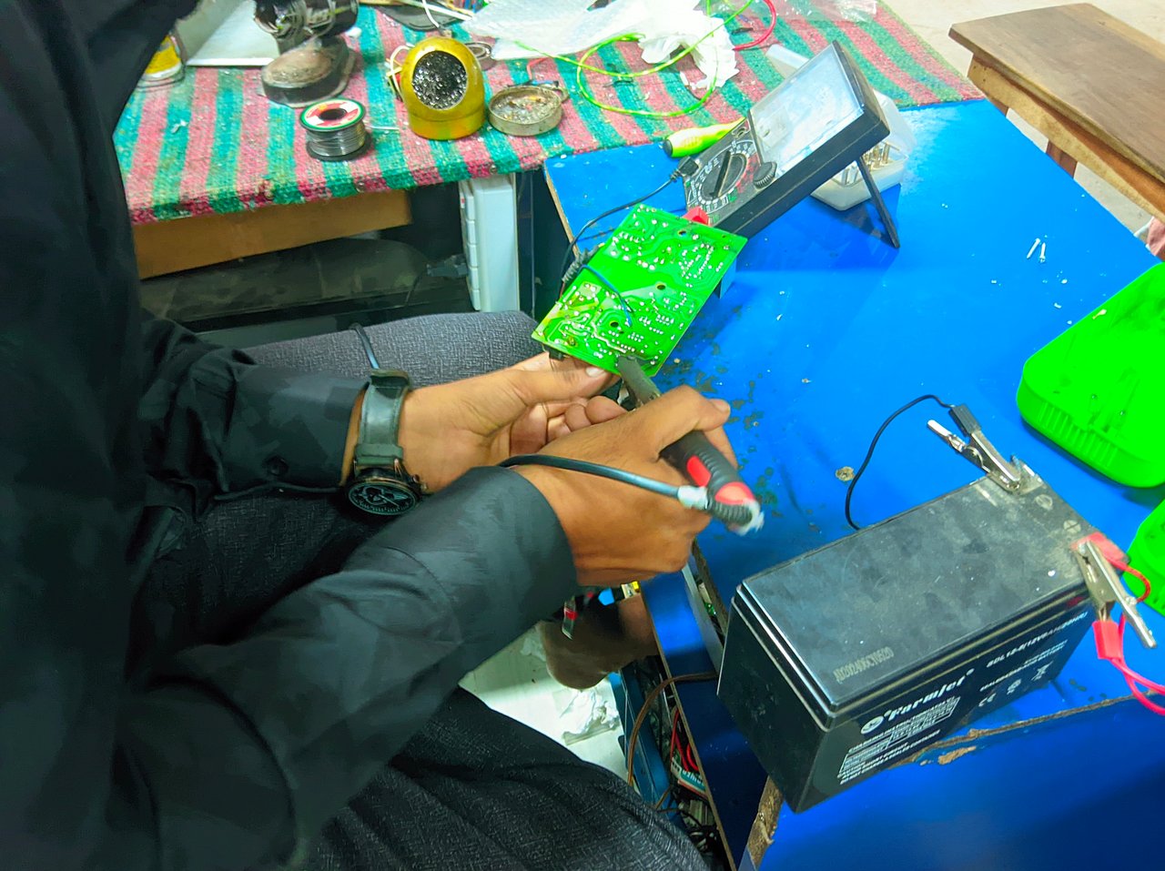 Then I saw LED bulb lighting plates in his shop. The LED bulbs that we use at home have these lighting plates inside the bulbs, if they get damaged, these plates can be installed.
