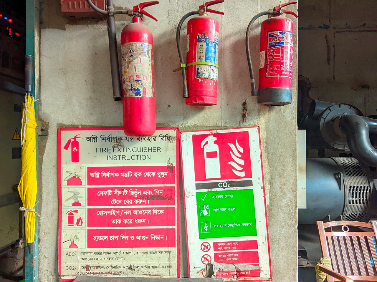 Now let's talk about safety in the factory. Our factory is very strict about safety. Our factory has safety arrangements for all workers. We have fire extinguishers kept at different places. Water lines are installed at many places. So that if there is a fire, it can be easily extinguished.