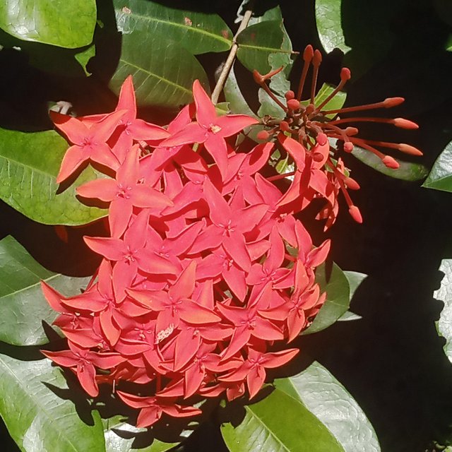 Today, I want to share a glimpse of my garden's beauty – the vibrant Ixora Coccinea, also known as Rangan Phool in Bangladesh. Its bright red petals form a lovely cluster, adding a burst of color to the greenery around. 🌿