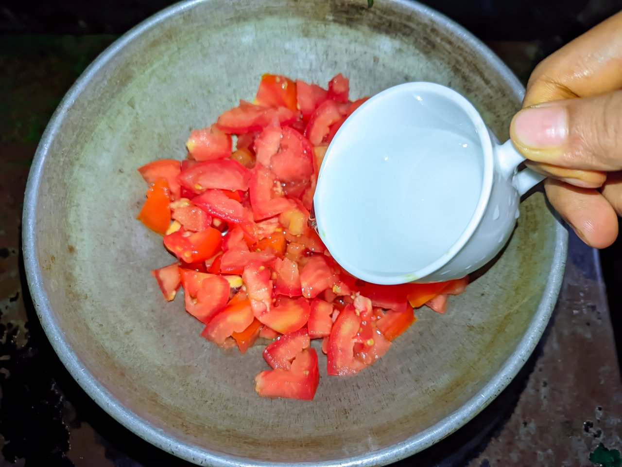 First, wash the tomatoes well, then cut them into small pieces. Now put a pan on the stove and put the tomatoes in it, then add 1 cup of water in it. Now take some time and boil the tomatoes well.
