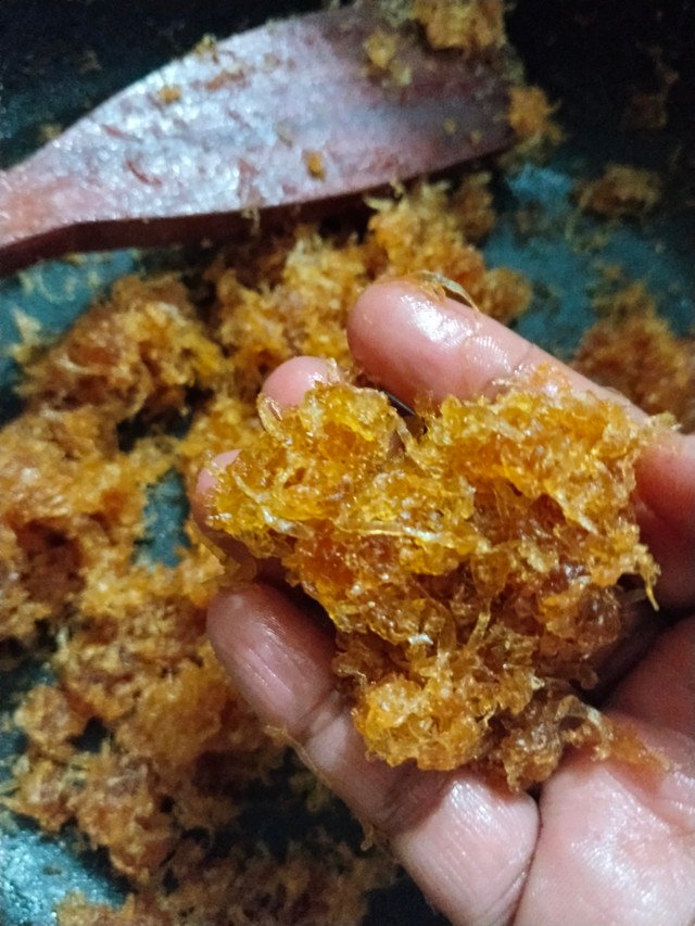 - Then I made caramel by stirring the sugars well.