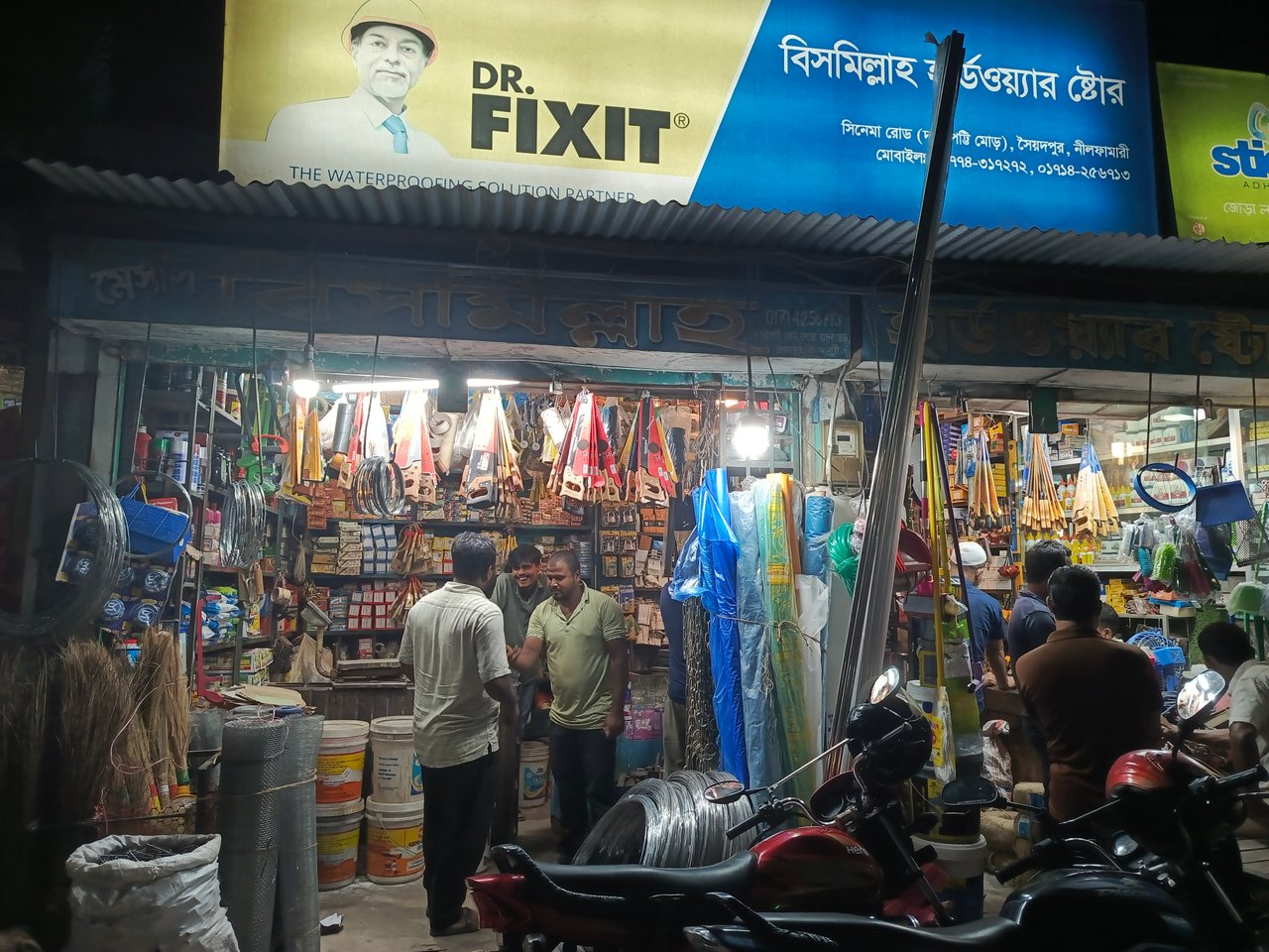 There are numerous hardware shops in Syedpur. All the shops are in Dharma Patti. Among them, Bismillah Hardware is the largest. All the wholesale goods are sold here. There are many small shops around Syedpur.