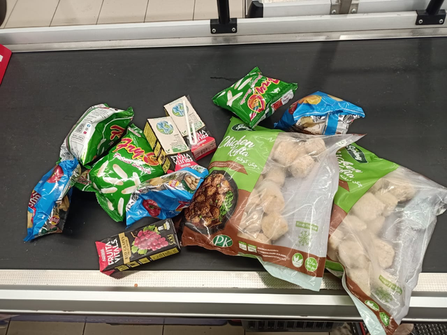 From here, I wanted to buy spring kofta, which is made of chicken. I couldn't find spring kofta on the screen. Then I asked them about it, and they told me about it and brought it out. After buying two packets of spring kofta, my younger cousin was with me, so I bought some snacks and juice for him. After buying these things, we reached the bill counter.