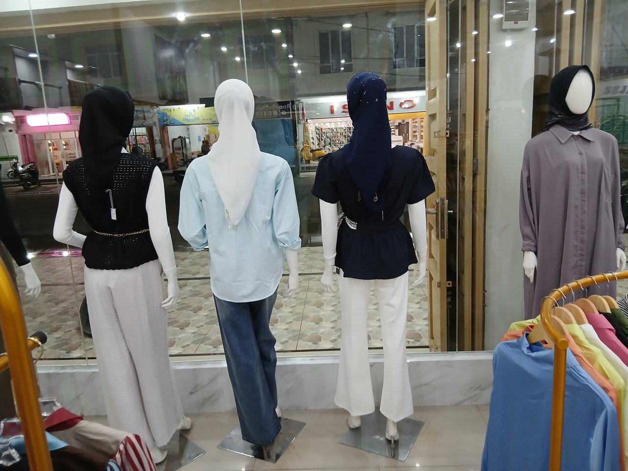 At the front, near the window, there are mannequins. These mannequins are used to attract female visitors passing by the store to glance at the clothes in the store. Usually, the clothes on display will look good when worn. There are about six mannequins at Isano QQ.
