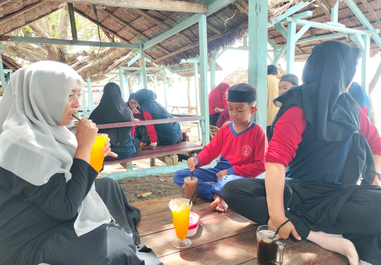 Pulang dari sekolah saya dan kawan-kawan saya ke pantai untuk makan-makan,karena hari ini termasuk hari anak wanita sedunia,kami yang cewek-cewek langsung ke pantai untuk makan-makan,apalagi dengan deburan ombak dan angin laut yang sejuk membuat suasana jadi lebih rileks.