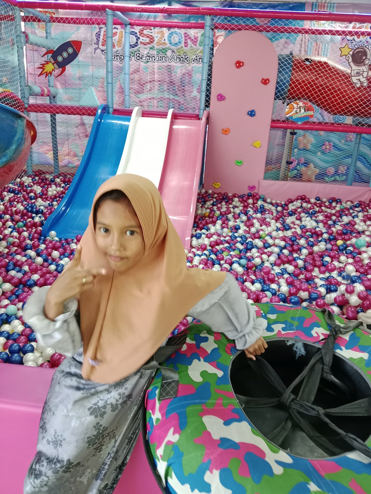hari ini adalah hari yang cerah dan sempurna untuk menghabiskan waktu bersama buah hati. aku dan anakku memutuskan untuk mengunjungi kids zone yang terletak di simpang rangkaya. tempat ini selalu ramai dengan tawa ceria anak-anak dan menjadi favorit bagi banyak keluarga.