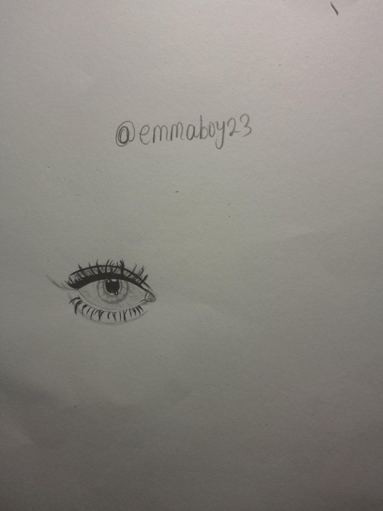 Next I drew the second eye. To give the eyes a realistic appearance, I shaded the darker areas while leaving tiny highlights within the pupils to create the effect of reflection. The eyelashes were drawn one at a time, using quick, curved strokes to make them look natural and long.