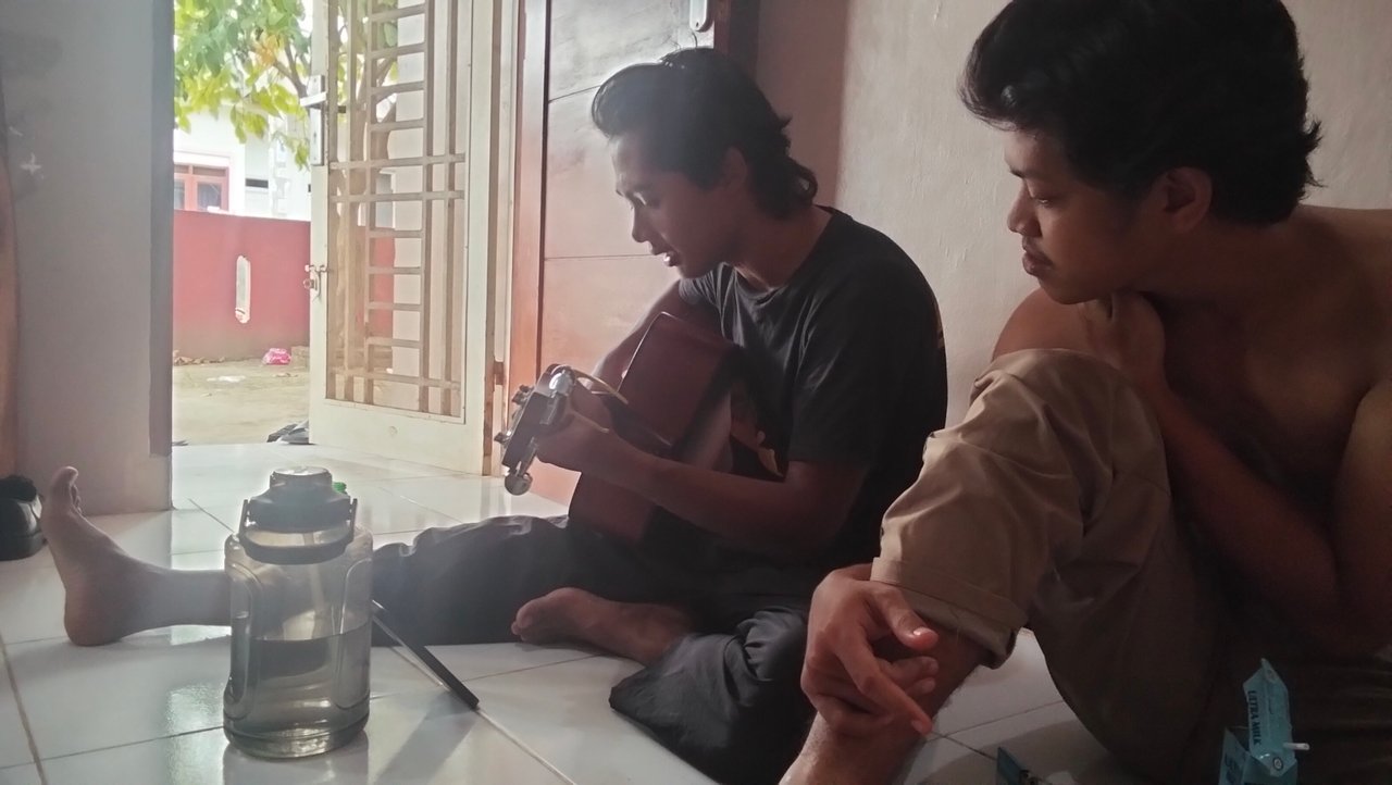 Sesampainya di rumah, saya pun bersih-bersih dan kemudian saya sholat ashar karena sudah tiba waktunya, karena takutnya kalau ditunda nanti kelupaan. Selesai sholat ashar saya pun duduk di ruang tengah bersama dua orang abang-abang yang kebetulan ngekost di rumah yang sama dengan saja juga sembari bernyanyi, karena kebetulan ada satu orang yang pinter main gitar.