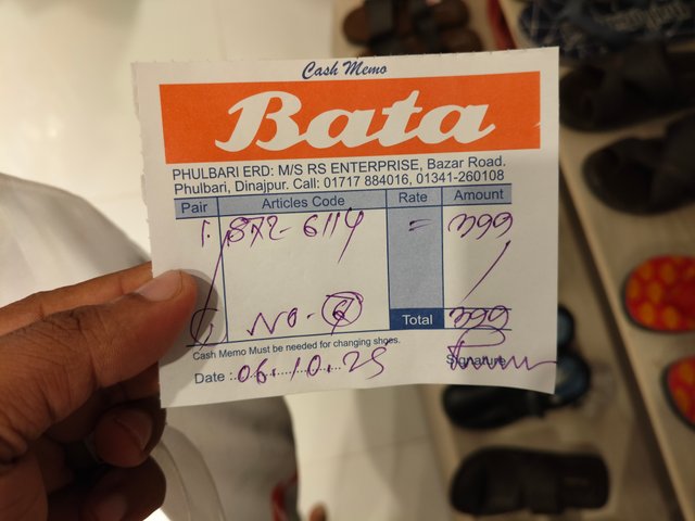 When I buy shoes, they immediately give me a computer receipt copy. When I went there, there was no electricity, so they gave me a handwritten copy. I will keep this copy as a document. Also, they often write other benefits of the product on the back of this copy. This way, they can give more benefits and we don't have to pay taxes.