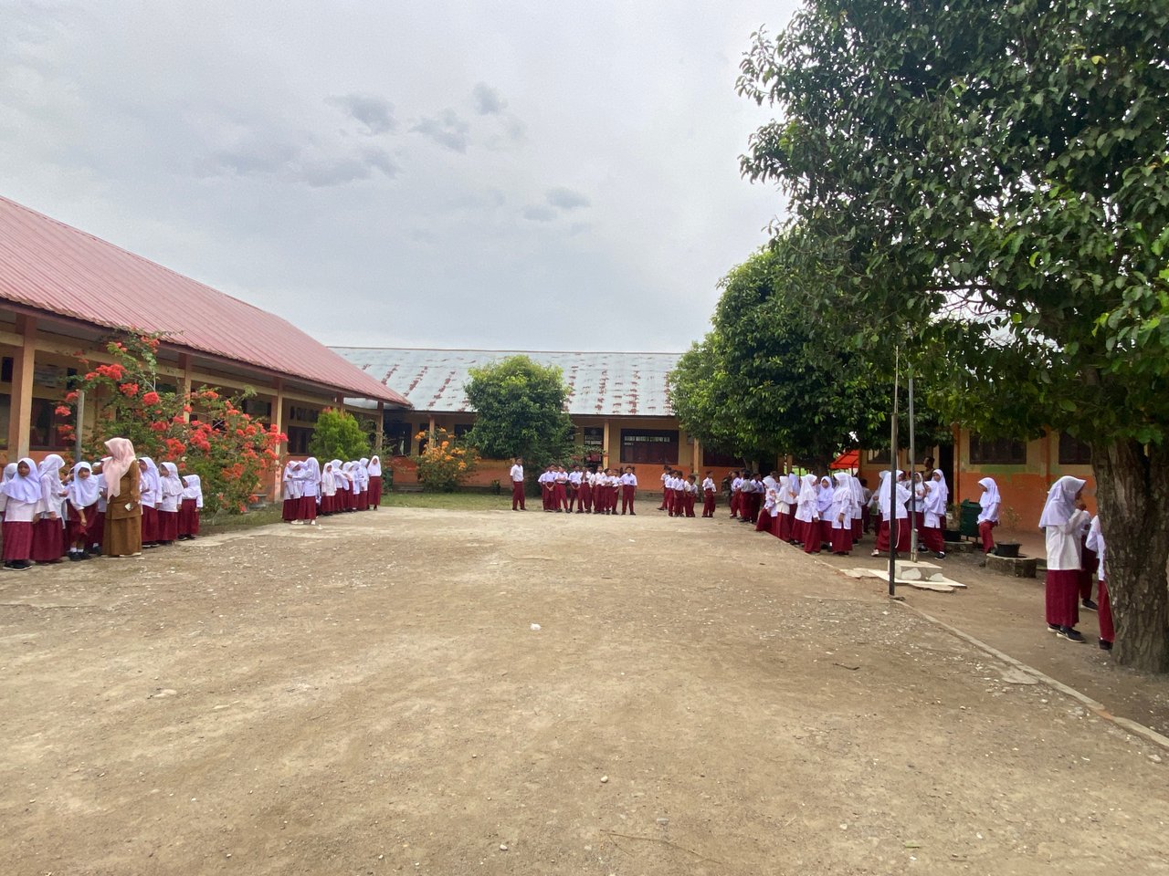 Habis itu, aku panaskan motor sebentar dan langsung antar adikku yang lain, Uun, ke SMP 1 Baktiya. Setelah selesai, aku balik ke rumah, lalu jalan kaki lagi ke sekolah bareng Anaqi. Pas sampai, suasana udah agak tegang karena banyak siswa yang telat. Semua murid udah baris untuk upacara, dan kami kebagian masuk di detik-detik terakhir.