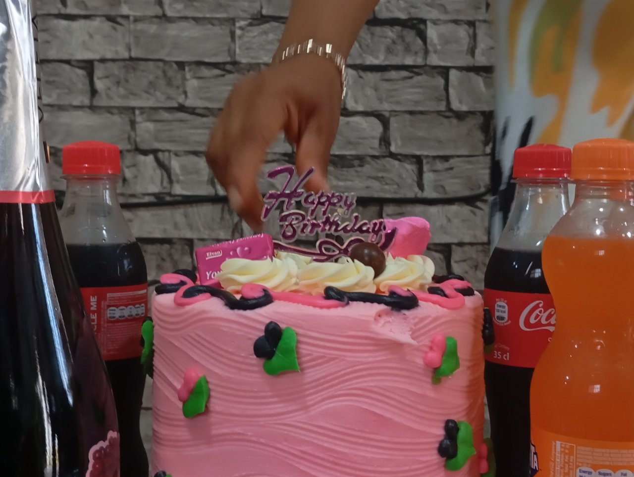 From coca-cola to fanta to Schweppes.All for decorating the cake table .