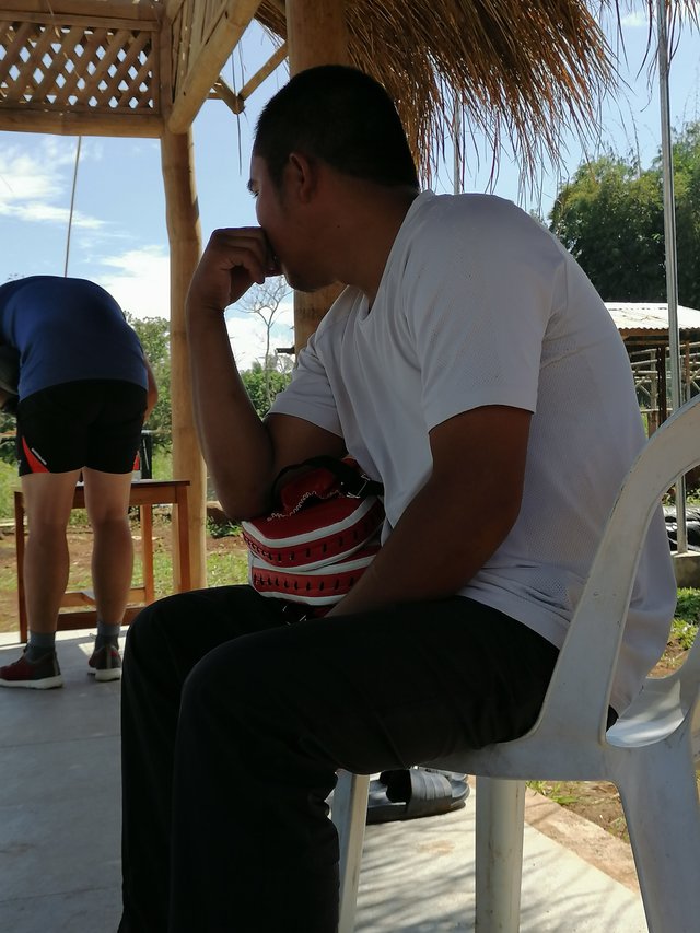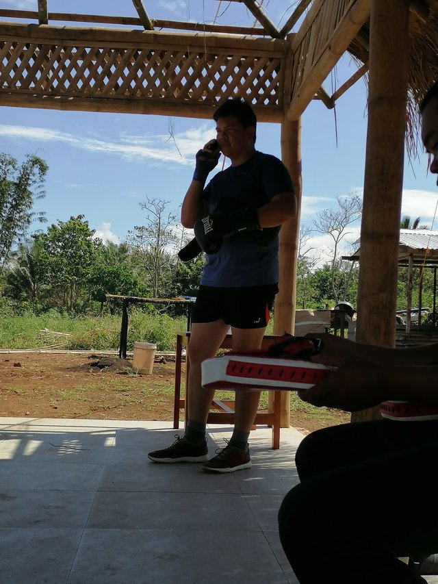 After a few rounds, he asked me to take a picture of him and sent it to his family, of course with a little call here and there. I wondered if that is really how busy he was but I guess he s just making a space for relaxation. Punching in the mitts is hard too! Have you tried it?