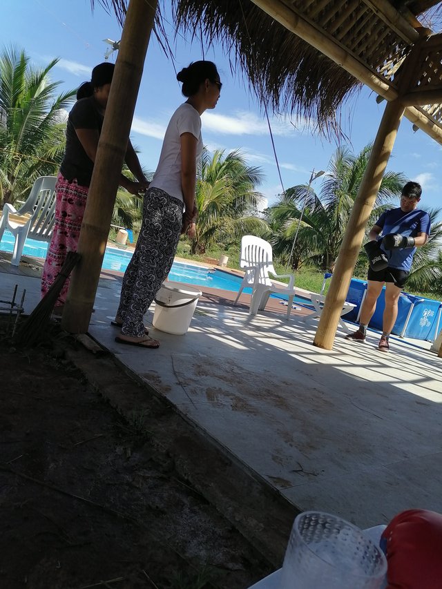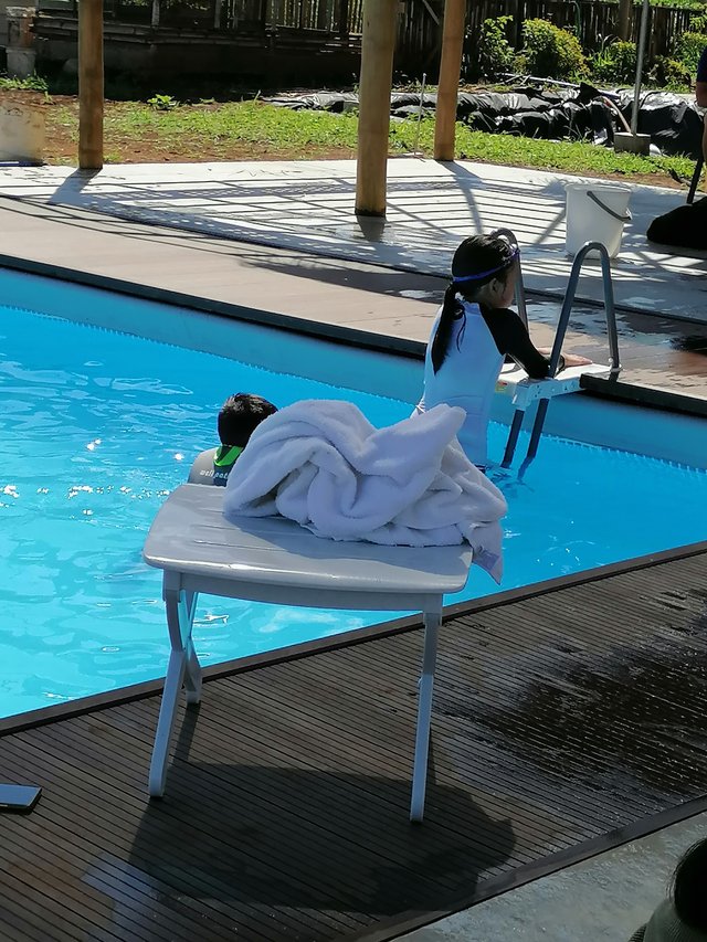 Just a few more rounds and they are done. The small pool was restored to its usual position; the youngest child is throwing tantrums because he wanted the small pool, maybe he feels safer in here.