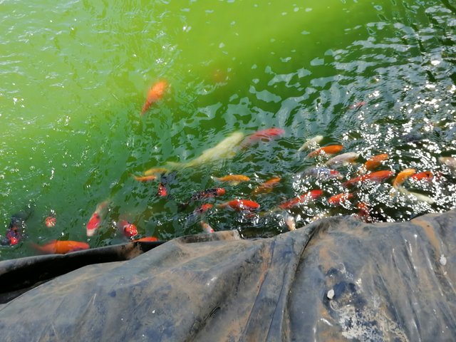 This is what's on the left pon prior to entry: Tilapia fishes; but look, there's an odd one!