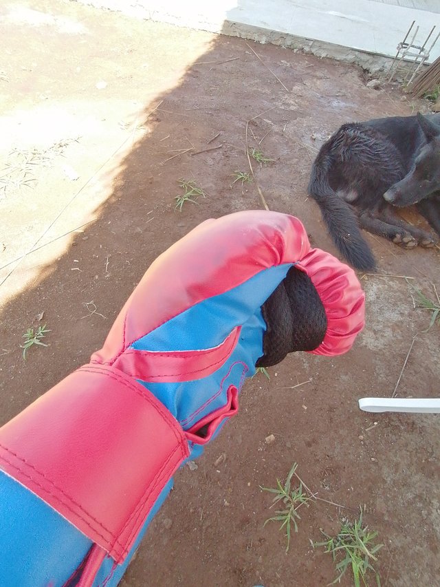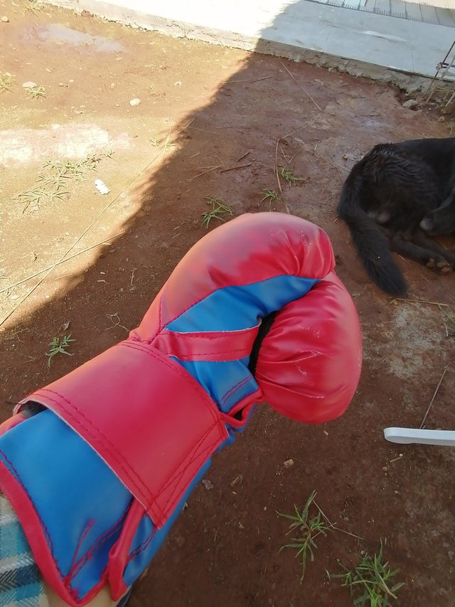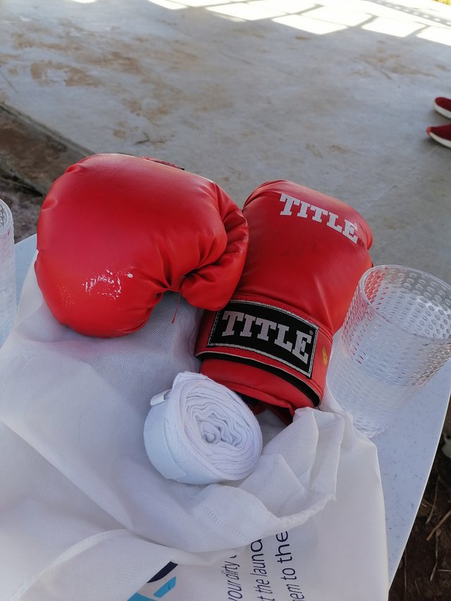 Then the boxing training began: there is an extra pair of gloves and tapes.
