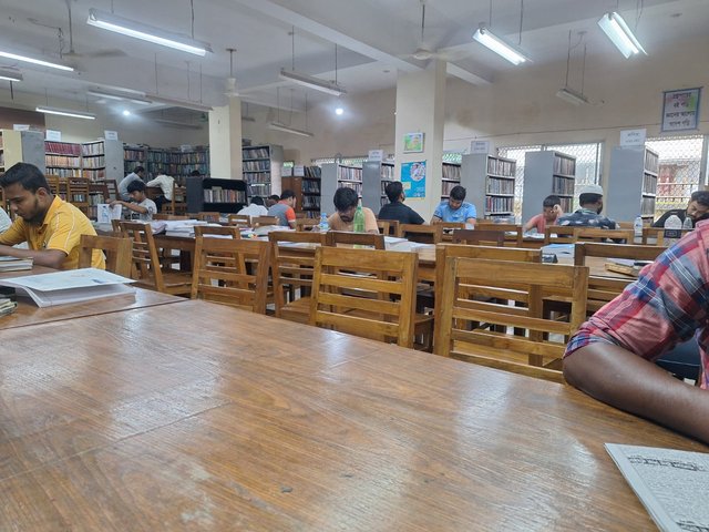 Today, there are few readers in the library because the BCS exam is two days away and many are studying at home without wasting time. I studied in the library until noon. I did not bring food, so I was not focused on studying after noon. I came out of the library.