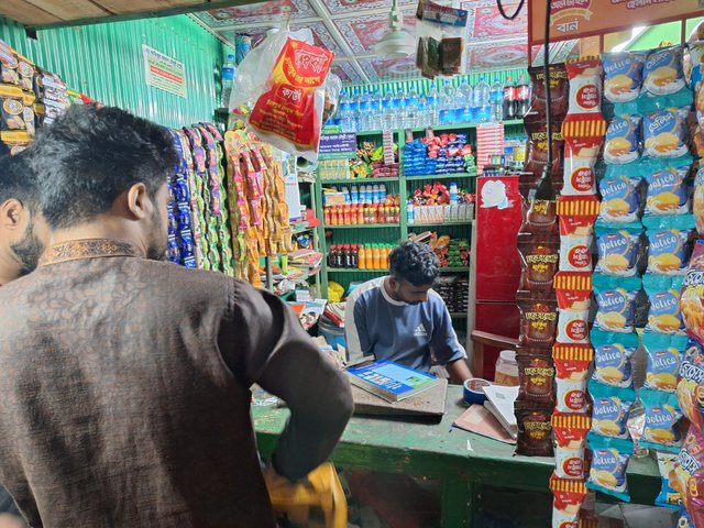 In the evening we went out to do some errands: buy Asif's book, buy Taukir's pajamas, and I need to get a water bottle and a food grade box from the crockery shop. First, since the book has many pages, Asif's book will be cut into small pieces according to the subject so that it is less heavy to read and carry in the bag. The shopkeeper of this book binding shop also sells paan supuri and cigarettes in his shop. I was watching them with a supuri cutting machine.