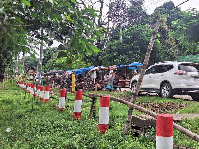 Today, there is still a football game on the field. There is still a lot of time left for the game to start. In the meantime, players are coming by bus. Many people are coming by auto to watch the game. They have made a garage system along the road where they have arranged to leave bikes, autos, and bicycles and watch the game with peace of mind.