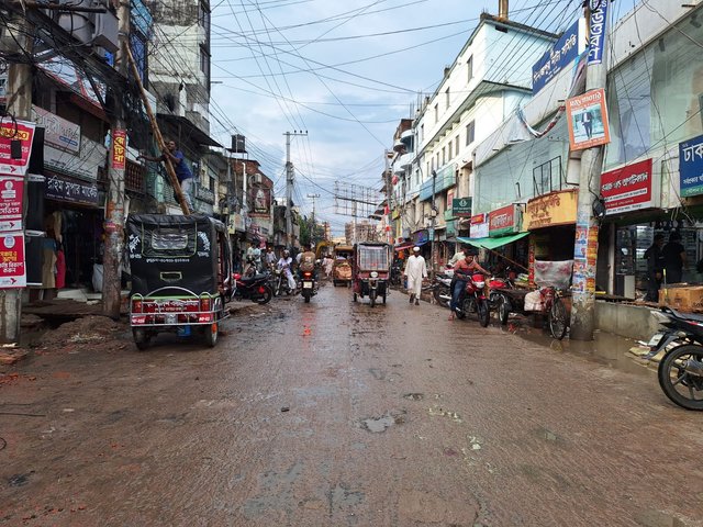 I can't get an auto on the road. I have to walk to the station. I can't get an auto from the station either. Even if I do, the fare will be higher. There is road construction ahead, so I have to take some detours. I am walking, trampling on the mud and dirty water on the road. Who knows when this work will be finished. The dirty water from the drain has risen on the road. I returned home, took a bath and had lunch.