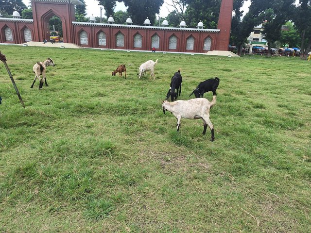 I walked towards home. I have to take an auto to come home. For that, I have to go all the way to the road. A man is bringing his goats to the field to feed them grass. Since there are many people in the field, he is unable to control the goats. Some of the goats are running here and there.