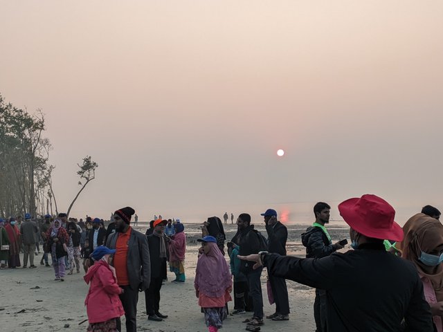 I enjoyed the joy of watching the sunrise over the sea. It is the most fortunate thing to be able to watch the sunset and sunrise from the sea. That is why people stand in the morning to take pictures with good places. I was also standing here with a family to watch the sunrise. The sunrise in the fog was incredibly beautiful. I have never enjoyed such a beautiful view in my life.