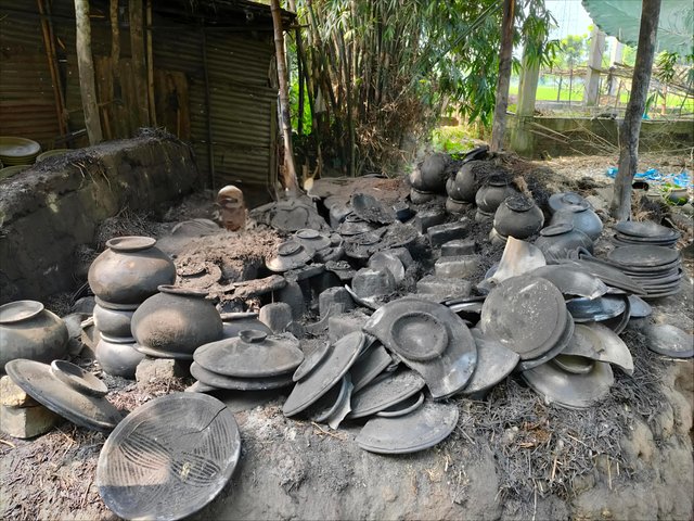 In this hearth, first the earthenware is placed in three layers. Then the pots are arranged in rows. Then the earthenware is arranged beautifully with straw on top of this earthenware. Then, a fire is made with straw or leaves under it and these pots are burned for 6-7 hours. Then again these burnt earthenware are removed from the layer and the pots are removed from that place. After this, the pots are cleaned and arranged in a van and many people give those pots aesthetic designs.