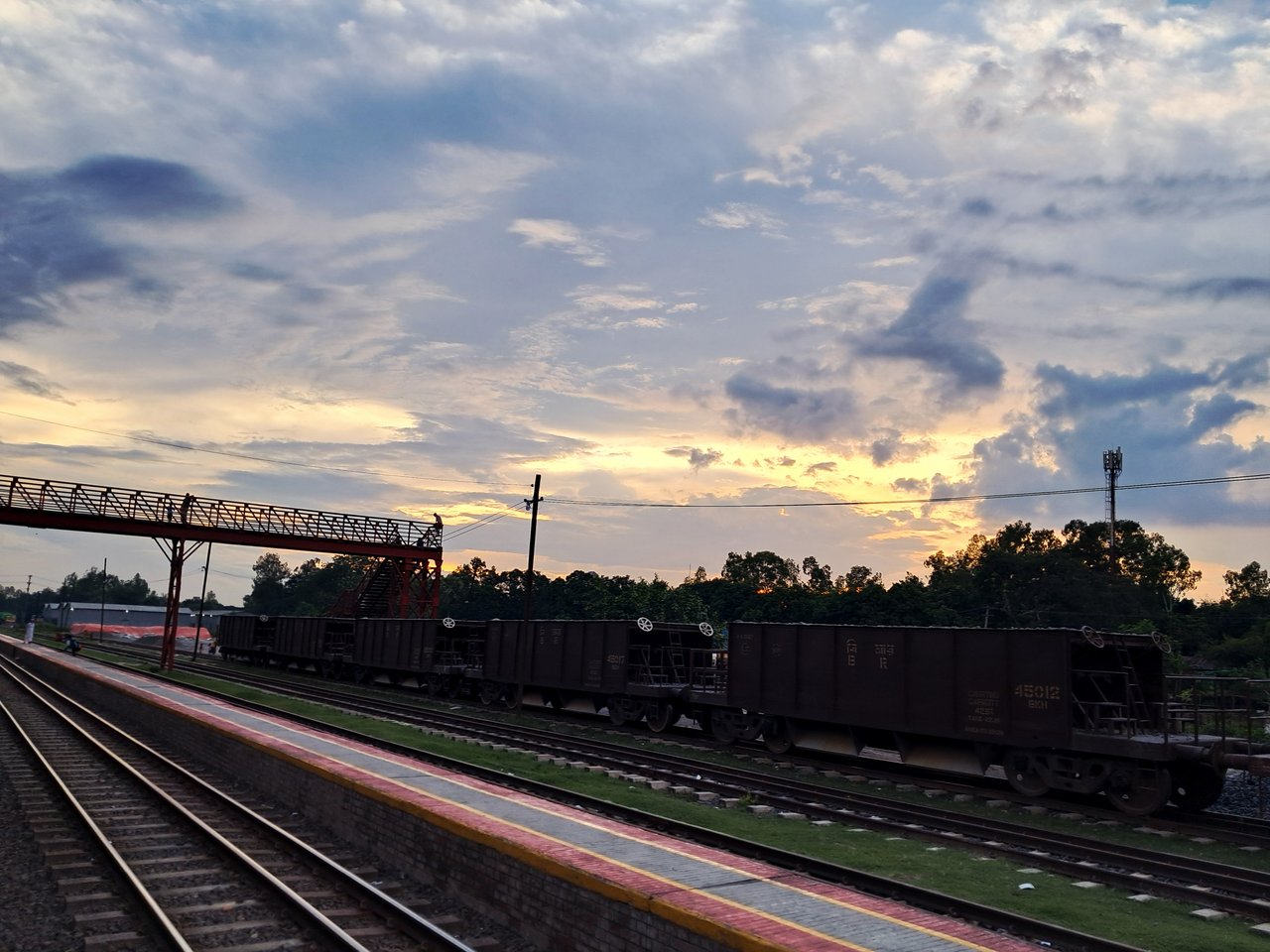 It is a long-distance train in which all people travel and all people travel here very well, so I got on that train with great joy, but after a while after getting on the train, a light rain started falling. I got on the train in the afternoon, then when the sun was slowly going west, I went and stood in front of the train door. I saw a freight train on the other side of the train line, so I took a picture.