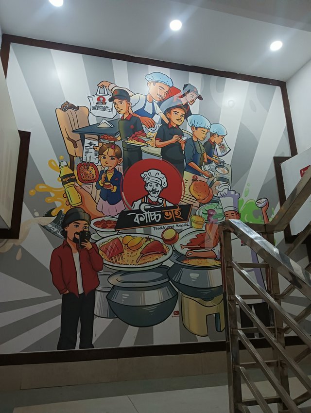Since this Kachchi Bahir restaurant is located on the second floor, I was going to take the stairs from the first building to the second floor building. That's when I noticed that there was a very beautifully designed design on the wall on the second floor, it was very beautiful to see. Many people were happy just by seeing this design. Anyway, then I entered inside.