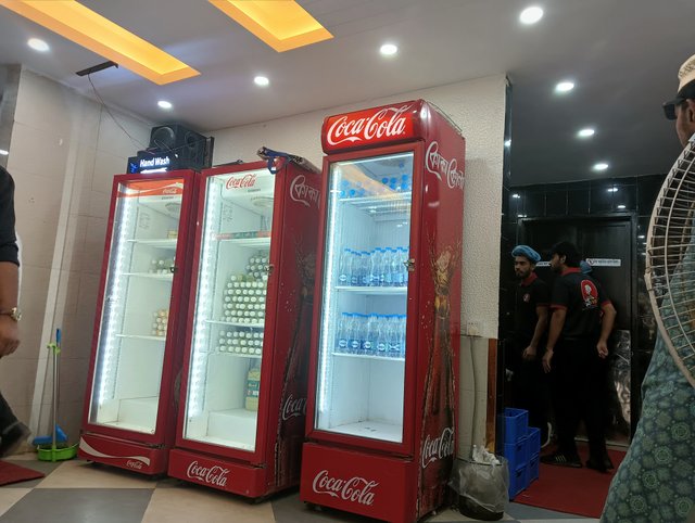 The interior and every place has been decorated very beautifully. Different types of lighting systems have been installed in each place, which makes every place in this restaurant look very beautiful. I have already seen refrigerators on one side of the room where different types of food have been stored. Several refrigerators have been placed together in a row.