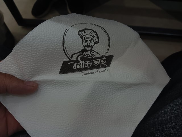 Then I ordered a while ago, I was asked to wait for 10 minutes. With time, I saw that my food was brought to me. So I started eating immediately. Kachchi Bhai Etkhasi's Kachchi Khabar was delicious and fluffy. Along with it, different types of salads were used. Lemon, cucumber, and green chili were used in the salad. After finishing eating the food, I noticed that Kachchi Bhai's logo was also used in the tissue. This scene was more beautiful and wonderful to see.