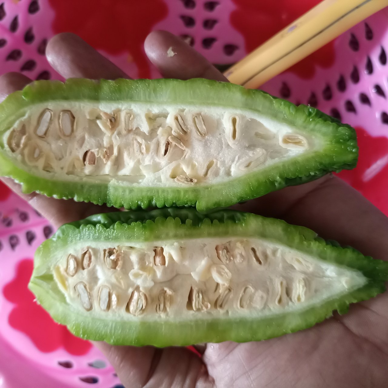 It is a delicate, thin vine vegetable with buds on top. Raw bitter gourd is eaten cooked as a vegetable. When ripe, its color is red and the seeds also turn red. Its seeds are white when raw and red when ripe, which resemble pumpkin, watermelon, or zucchini in shape.