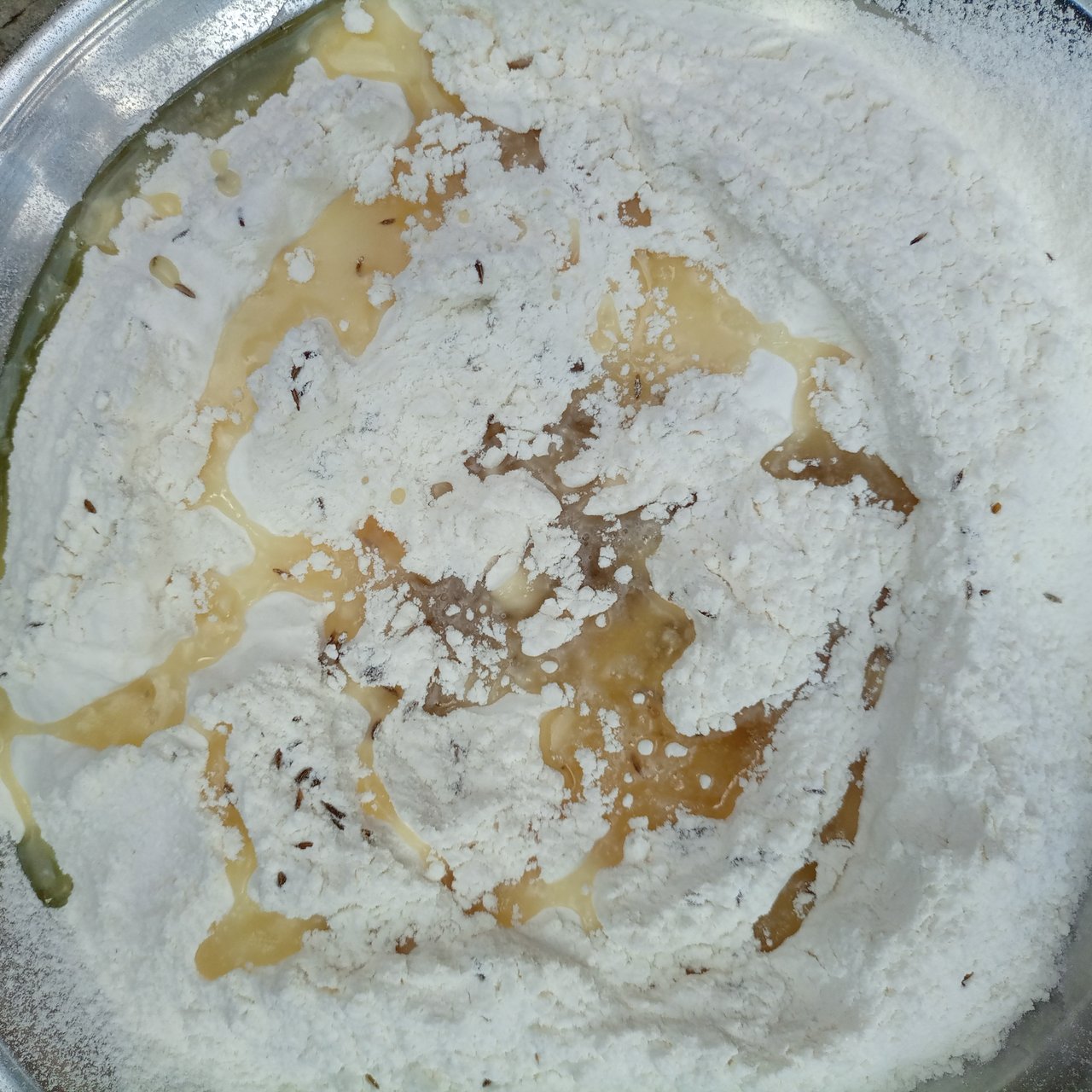 First, sift the flour, then add ghee and roasted cumin seeds to it, and start kneading it by adding water as needed so that it can be used to make a cover to pack the samosas.